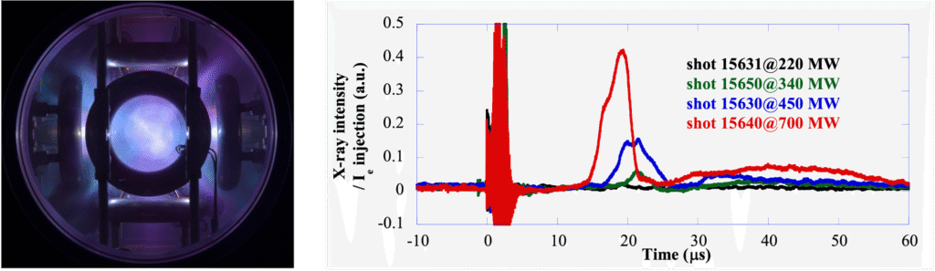 See the illustrations below from the EMC2’s peer-reviewed paper [“High-Energy Electron Confinement in a Magnetic Cusp Configuration”, Park et al, Phys. Rev. X 5, 021024]. The left is the snapshot of the WB inside the 6-coil Polywell test, and the right is the change in x-ray signal intensity over time, showcasing the improved plasma confinement. The successful formation of the WB due to the dedicated start-up system operating at 700 MW of pulse power, compared to failed attempts at 220 MW and 340 MW. This incredibly high power threshold is the reason why it took 30 years for EMC2 to achieve this feat, and others who tried to imitate the Polywell failed.