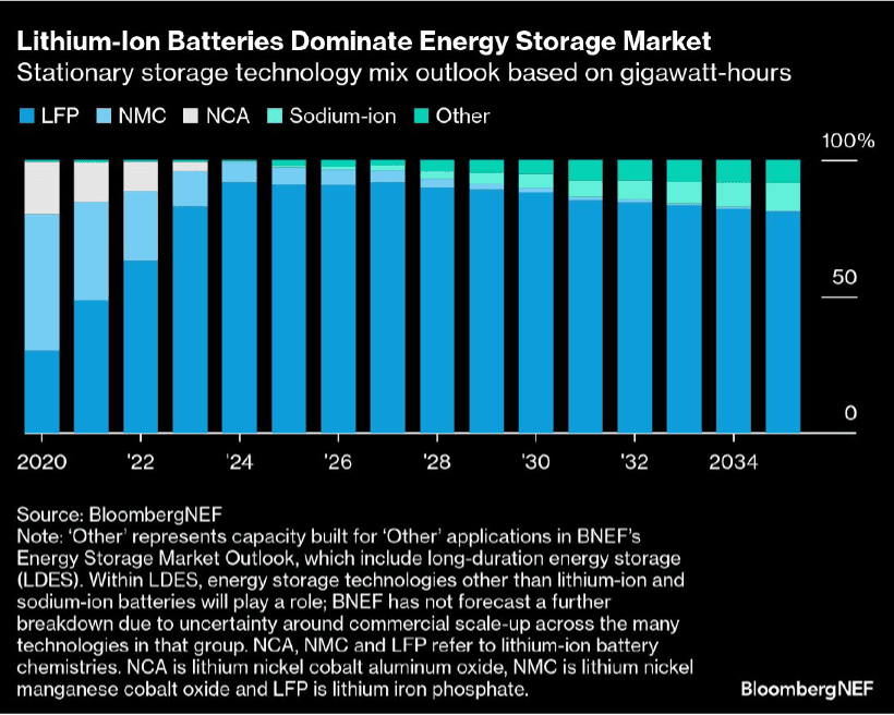From a global perspective, China has deployed significant amounts of grid-scale battery storage, and Saudi Arabia, South Africa, Australia, Netherlands Chile, Canada, and the UK have also deployed gigawatt-hour utility grid-scale storage infrastructure, with China leading the way according to Bloomberg NEF. In general, China still leads the world in the production of batteries for energy storage systems, where it enjoys the benefit of all the lithium-ion (Li-ion) batteries that it produces for electric vehicles (EVs). However, the EV and energy storage markets are expected to diverge in the near-term, as EV battery makers focus on nickel-based battery chemistries that offer higher energy density.