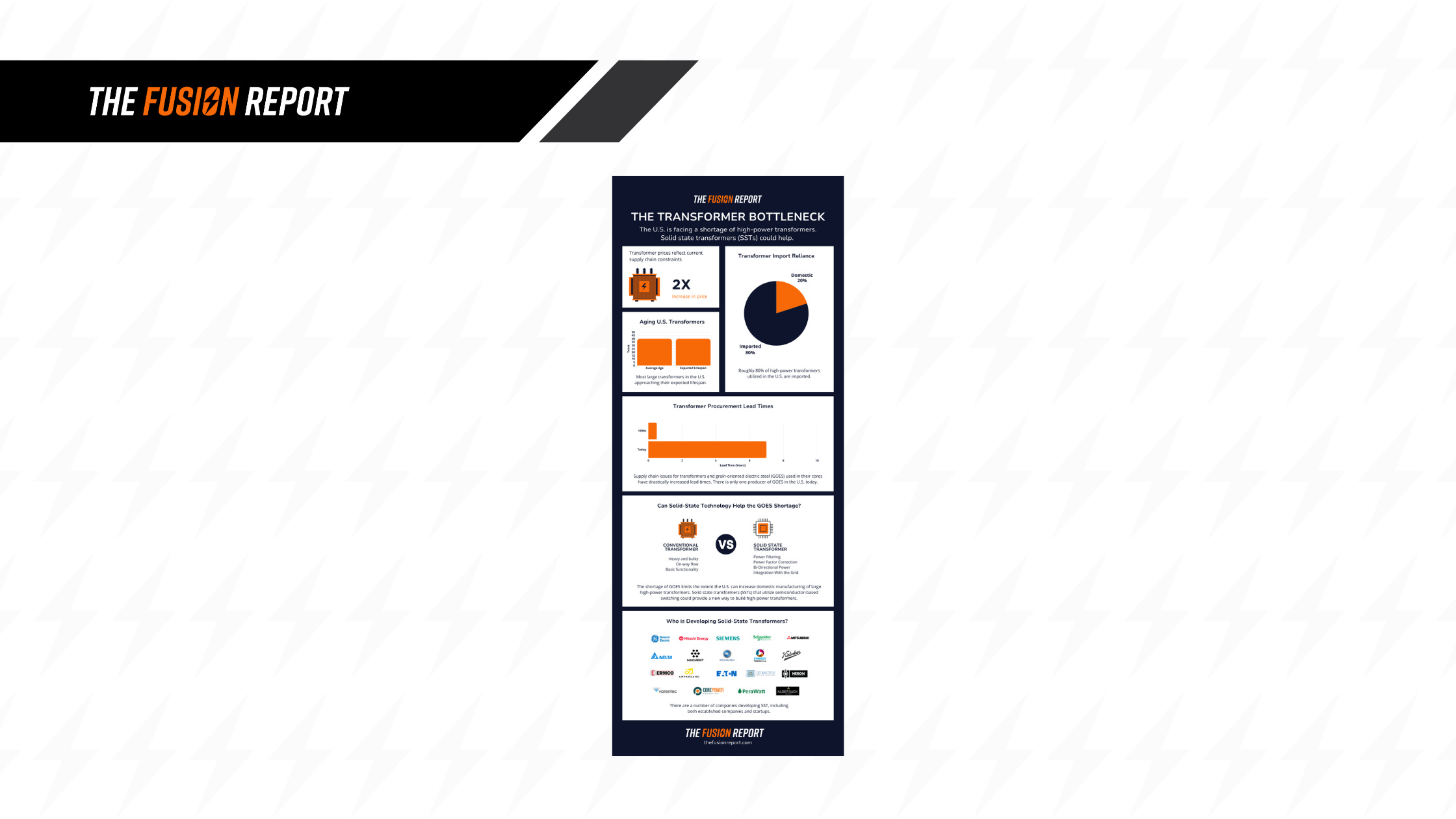 The U.S. grid faces a hidden bottleneck: aging transformers. With most units already at their expected lifespan, heavy reliance on imports, and lead times stretching up to 7 years, the system is under strain. Our new infographic explores the problem and highlights solid-state transformers as a possible solution.